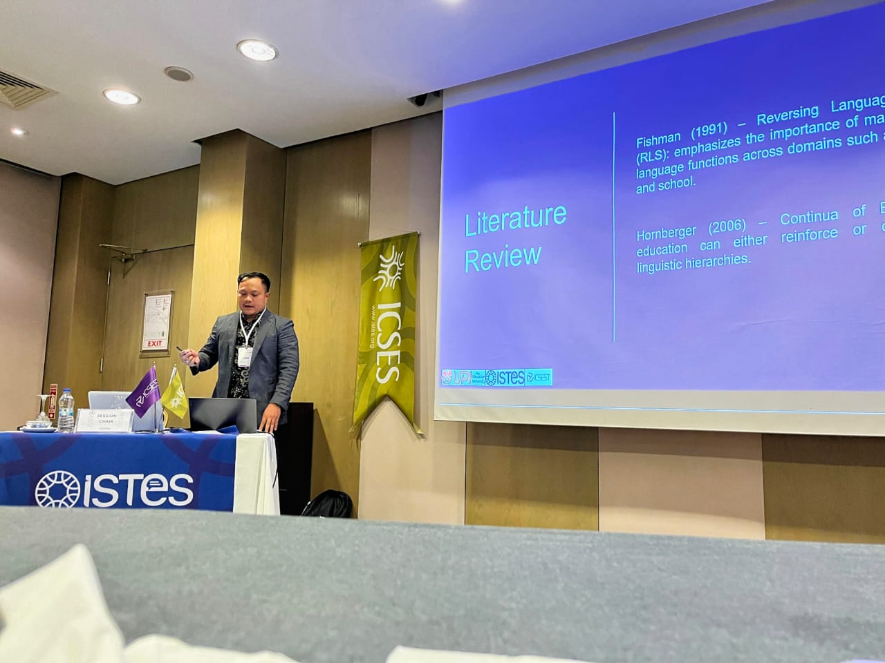 Penelitian yang dipaparkannya berjudul “The Impact of Language Policy on the Use of Padoe Language at South Sulawesi, Indonesia.” Kajian ini membahas bagaimana kebijakan bahasa, baik di tingkat keluarga, sekolah, maupun pemerintah daerah, memengaruhi pola penggunaan Bahasa Padoe, salah satu bahasa etnik di Provinsi Sulawesi Selatan.