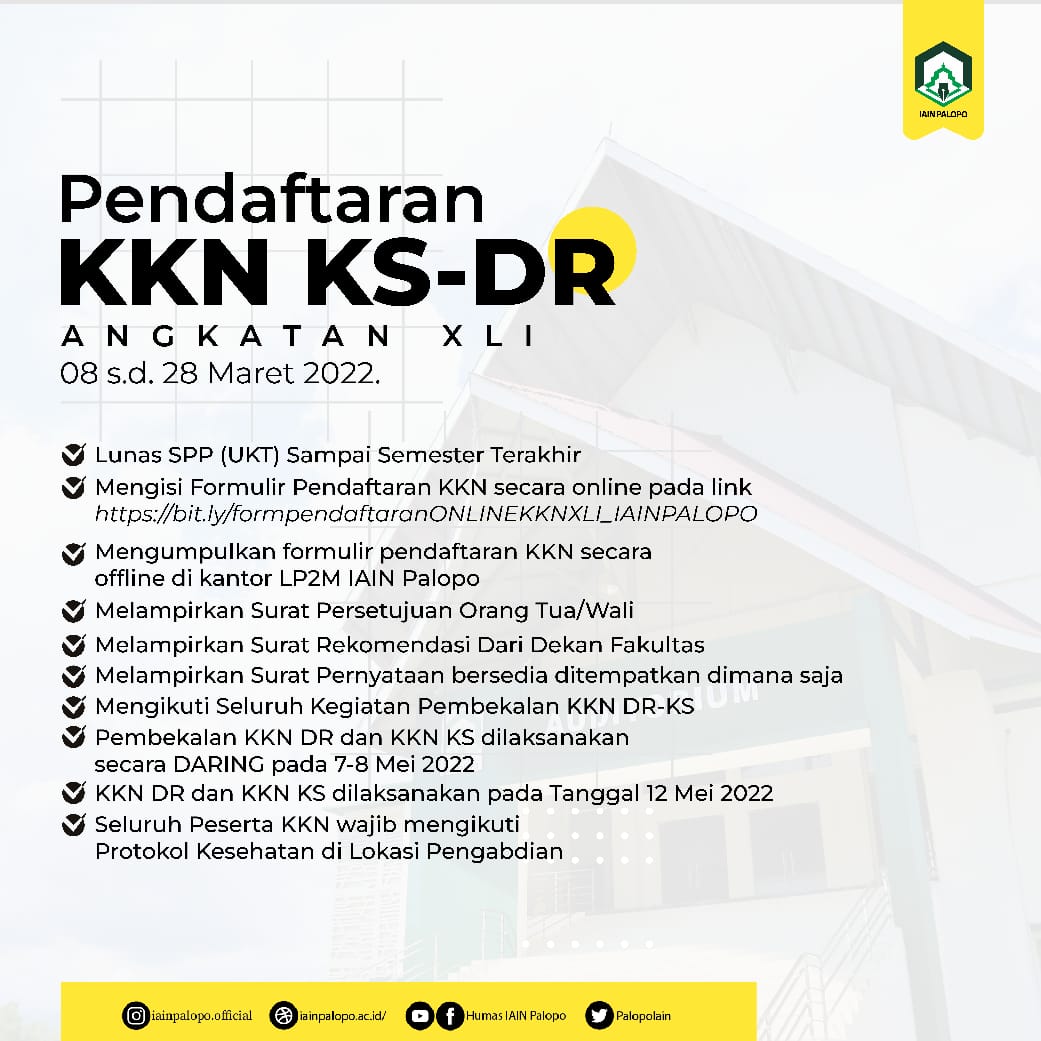 - Mengumpulkan formulir pendaftaran KKN secara offline di kantor LP2M IAIN Palopo