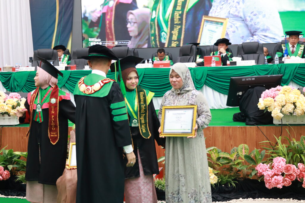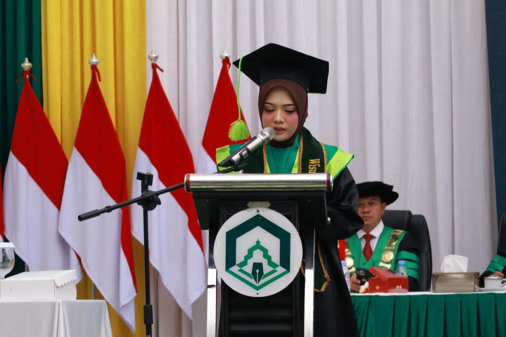 Pada kesempatan ini, Tria Giftia dari Program Studi (Prodi) Pendidikan Guru Madrasah Ibtidaiyah (PGMI) pada Fakultas Tarbiyah dan Ilmu Keguruan (FTIK), ditetapkan sebagai wisudawan terbaik tingkat Sarjana. Ia berhasil meraih Indeks Prestasi Kumulatif (IPK) 4.00 dengan masa studi yang relatif singkat, yakni 3 tahun 5 bulan.