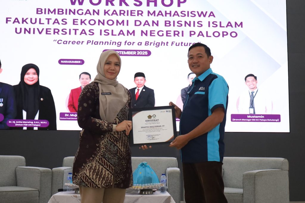 Palopo – Universitas Islam Negeri (UIN) Palopo melalui Fakultas Ekonomi dan Bisnis Islam (FEBI) menyelenggarakan Workshop Bimbingan Karir Mahasiswa. Kamis (18/9/2025) di Auditorium Phinisi di kampus 2 jalan Bitti Kelurahan Balandai Kecamatan Bara.