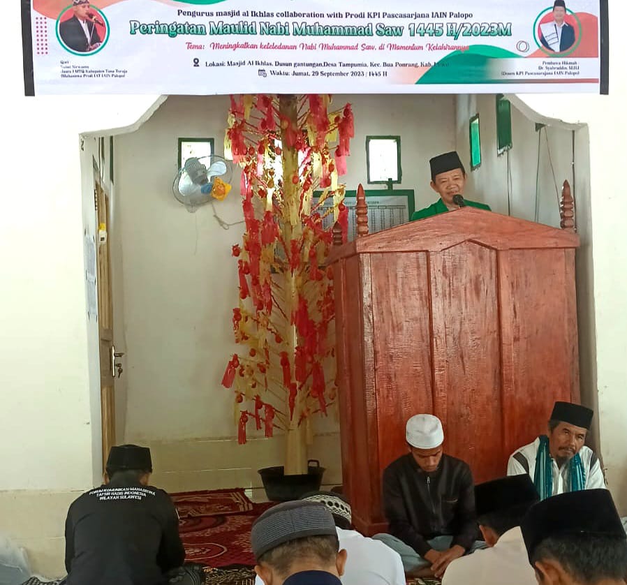 Kegiatan ini dikemas dalam bentuk Peringatan Maulid Nabi Muhammad Saw, pada Jum’at (29/9/23) bertempat di Masjid Al-Ikhlas Dusun Gantungan, Desa Tampumia Kecamatan Bua Ponrang Kabupaten Luwu.