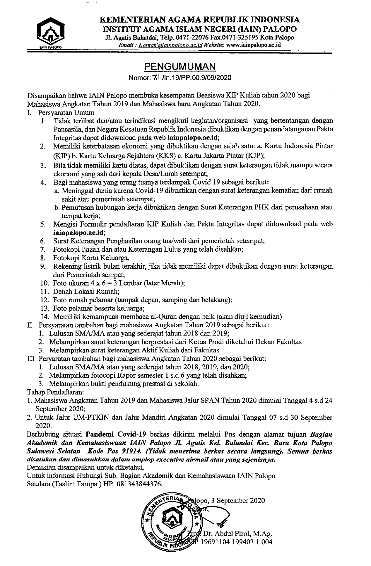 PPID Kemahasiswaan 04/09/2020 Download formulir pendaftaran KIP: https://drive.google.com/file/d/198-eu0OTvmJsJvEAwlw5IBxpvHA06fa5/view?usp=sharing Spread the love Share on Facebook Share on X