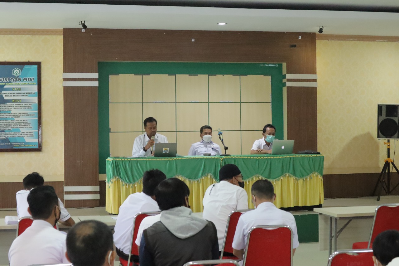 #KarebaHumas- Rektor Institut Agama Islam Negeri (IAIN) Palopo, Prof. Dr. Abdul Pirol, saat memberi arahan pada rapat penyamaan persepsi data akademik seluruh operator IAIN Palopo, harapkan adanya update data setiap hari jika hal tersebut memang ada perubahan. 22 Februari 2022.