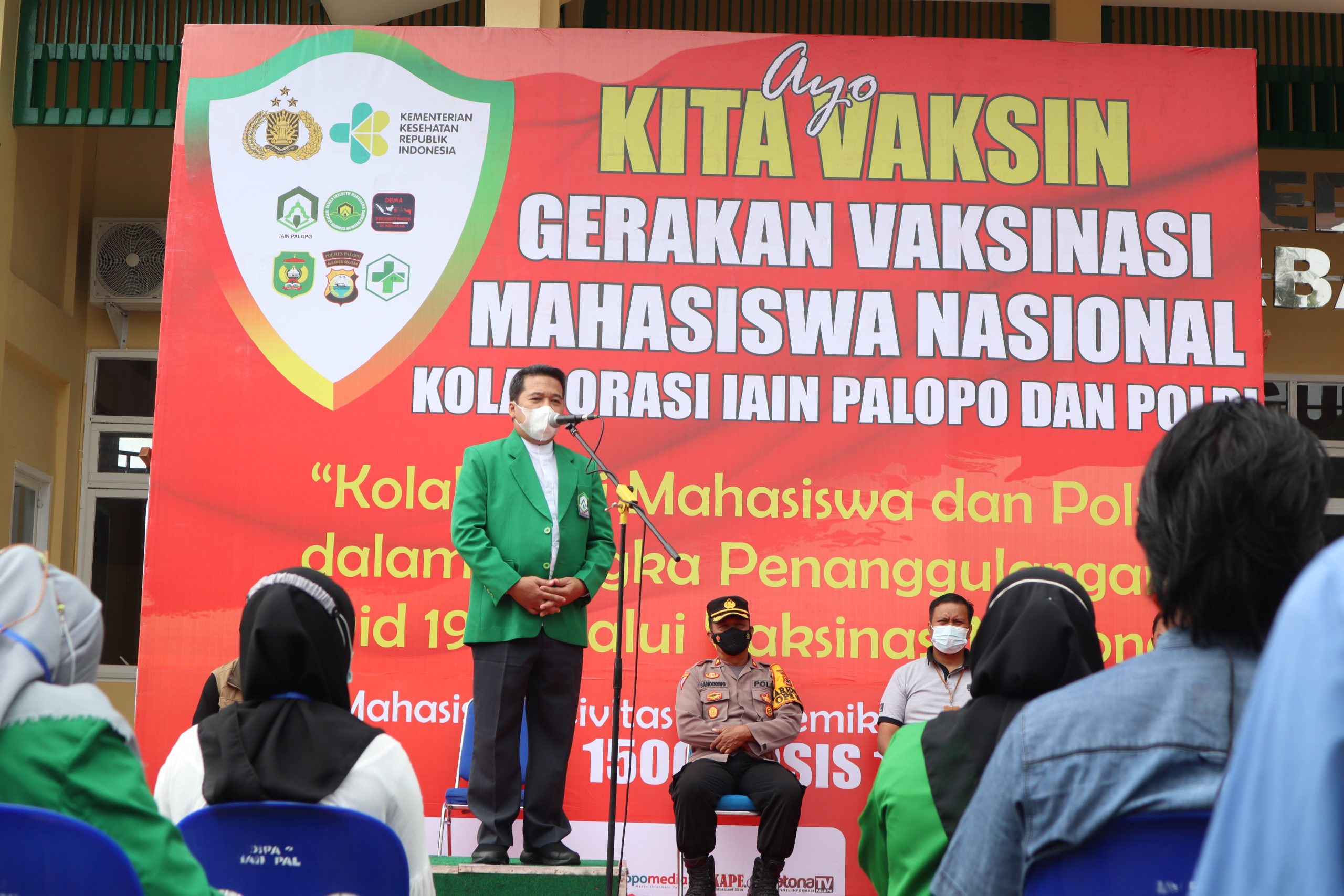 PALOPO—Institut Agama Islam Negeri (IAIN) Palopo melakukan vaksinasi massal terhadap Mahasiswa di aula gedung kampus IAIN Palopo, JUmat 24 Septmebr 2021. Ini merupakan vaksinasi tahap 1 yang dilakukan bersama Dewan Eksekutif Mahasiswa (DEMA) IAIN Palopo bekerja sama dengan Kepolisian Republik Indonesia (Polri).