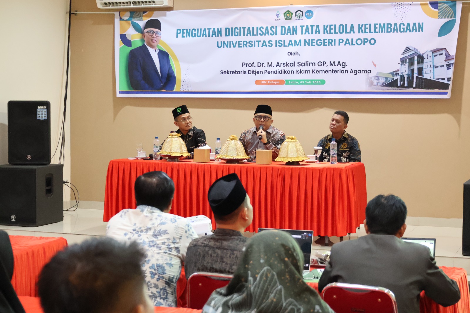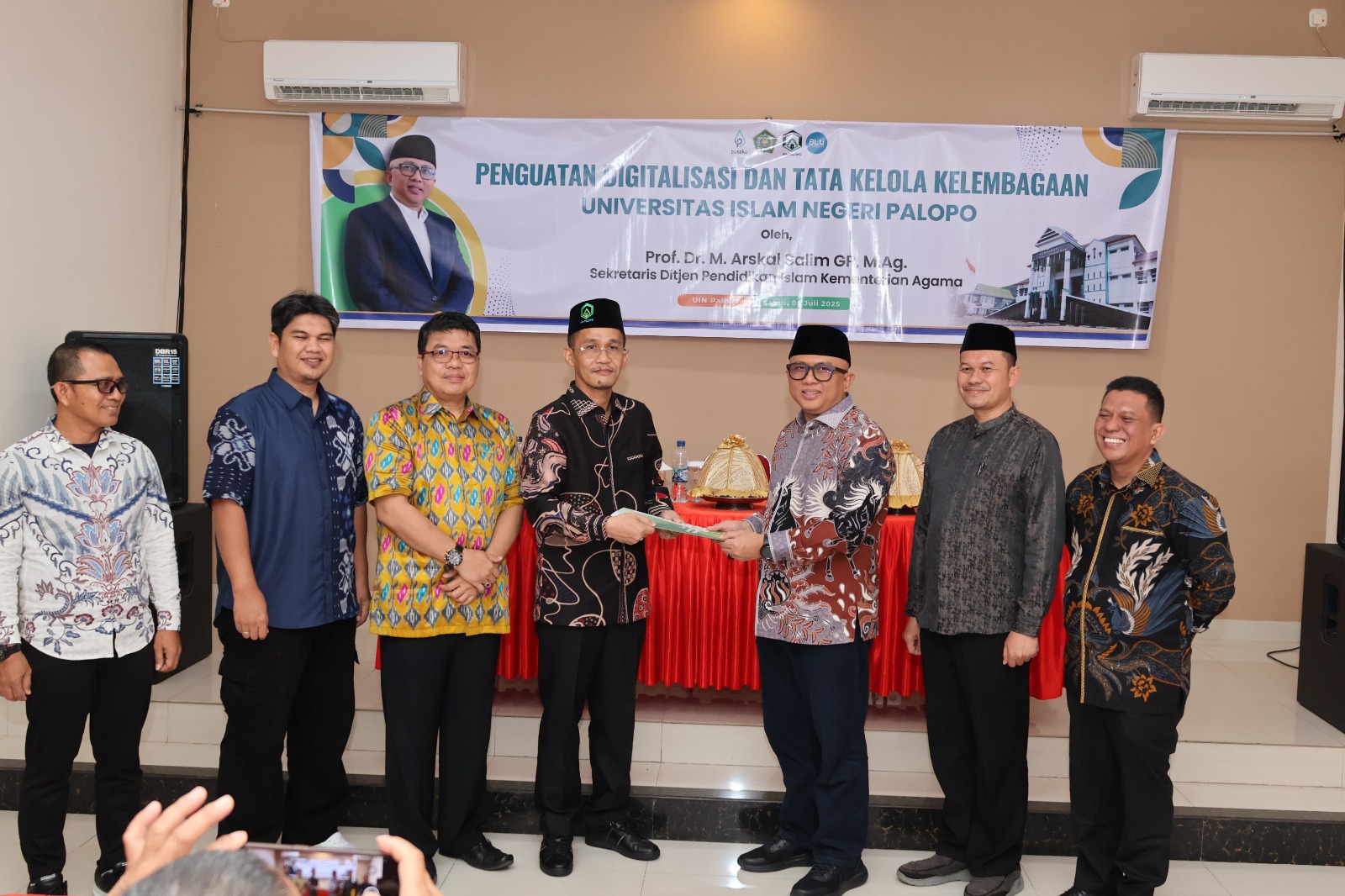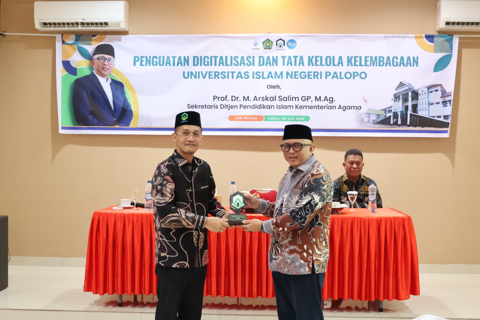 SK diserahkan langsung Sekretaris Ditjen Pendis Kemenag RI, Prof Dr H Arskal Salim GP MAg, di sela acara Penguatan Digitalisasi dan Tata Kelola Kelembagaan UIN Palopo pada Sabtu (5/7/2025) di Hotel Value Palopo Kelurahan Surutangan Kecamatan Wara Timur.