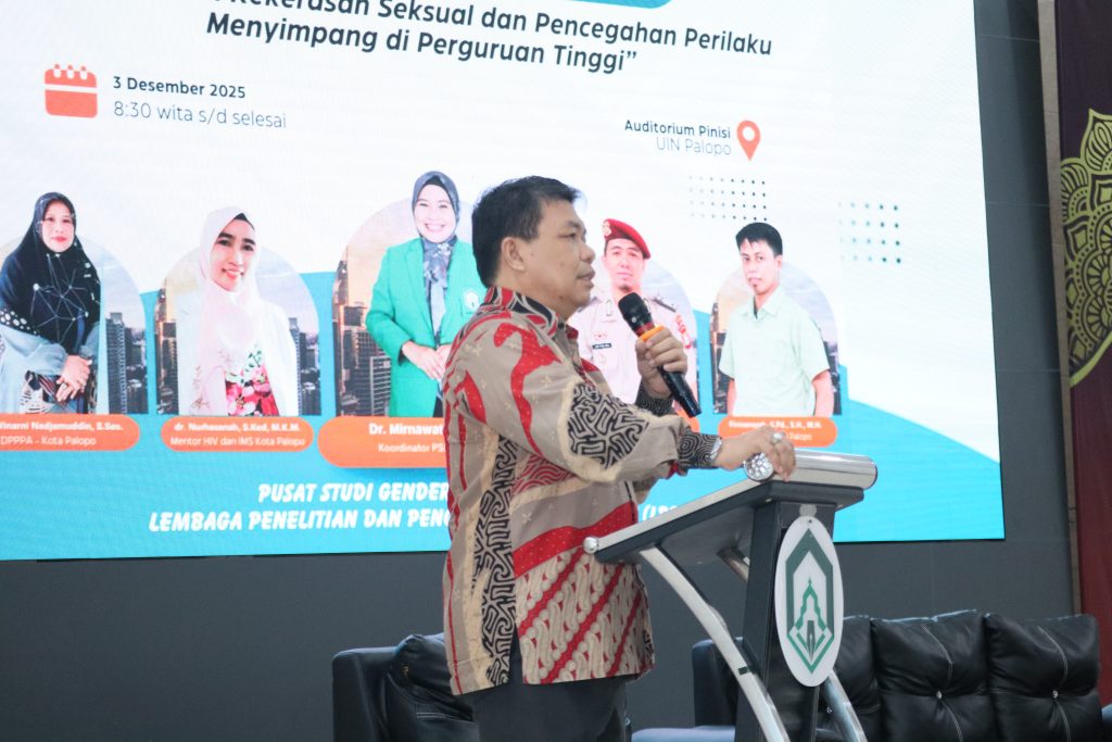 Palopo – Pusat Studi Gender dan Anak (PSGA) pada Lembaga Penelitian dan Pengabdian kepada Masyarakat (LP2M) Universitas Islam Negeri (UIN) Palopo menyelenggarakan kegiatan Talk Show dengan tema “Penanganan Kekerasan Seksual dan Pencegahan Perilaku Menyimpang di Perguruan Tinggi,” pada Rabu (3/12/2025) kemarin, bertempat di Auditorium Phinisi kampus 2 jalan Bitti Kelurahan Balandai Kecamatan Bara.