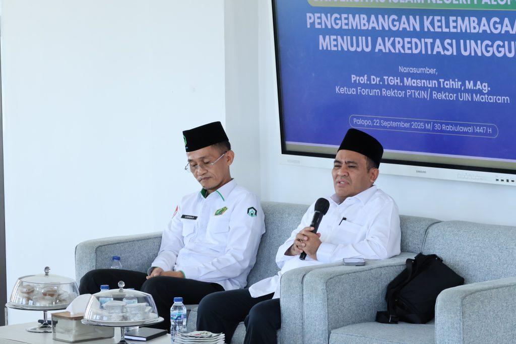 Palopo – Universitas Islam Negeri (UIN) Palopo menggelar kegiatan Pengembangan Kelembagaan Menuju Akreditasi Unggul, berlangsung Senin (22/9/2025) pagi tadi, pukul 09.30 Wita di Aula Fakultas Syariah di kampus 1 jalan Agatis Kelurahan Balandai Kecamatan Bara.